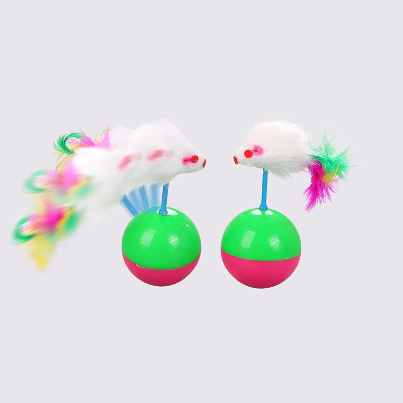 - Đồ chơi lật đật cho mèo có dạng con chuột và dạng đính kèm lông vũ, là đồ chơi tương tác cho mèo, dù cho mèo cưng có vờn, đẩy, gặm lật đật tới