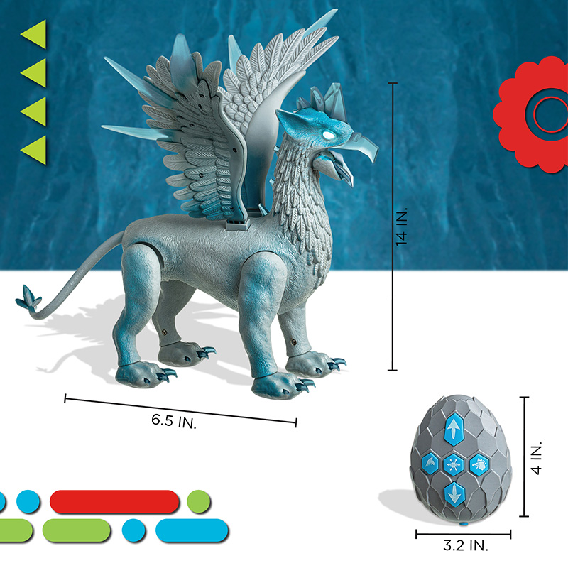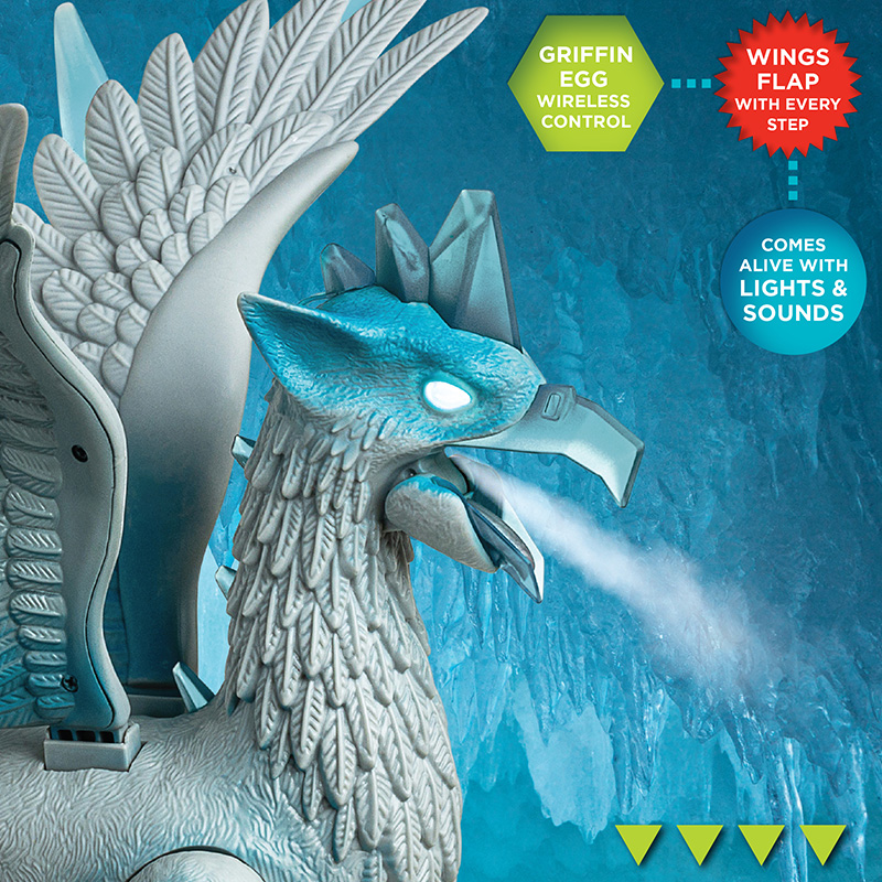 Điểu sư băng giá - 1312006301 của thương hiệu DISCOVERY #MINDBLOWN với khả năng phun khói độc đáo. Điểu Sư sở hữu 2 tiếng gầm thể hiện hai trạng thái tấn công và phòng thủ tách biệt. Với mỗi bước đi đầy uy nghiêm, Điểu Sư sẽ vỗ đôi cánh mạnh mẽ, và đôi mắt sẽ sáng lên như tia chớp. Bé sẽ được điều khiển dũng mãnh này di chuyển tiến, lùi, và trái, phải. Với từng khớp chuyển động như thật, bé sẽ cảm nhận được sự mạnh mẽ trong từng động tác của Điểu Sư này.