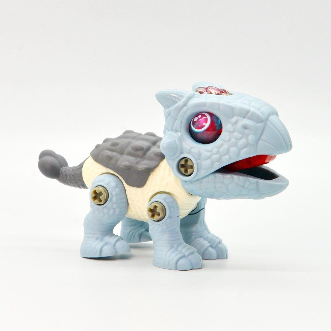 Đồ chơi lắp ráp khủng long với chất liệu nhựa ABS an toàn, màu sắc tươi đẹp, bắt mắt, các chi tiết dễ dàng tháo lắp và cất gọn, có thể xoay được như khớp chân, hàm, tay, đuôi. Chức năng phát ra âm thanh, ánh sáng mô phỏng tiếng gầm gừ của loài khủng long tạo thêm sự hào hứng cho các bé khi chơi.