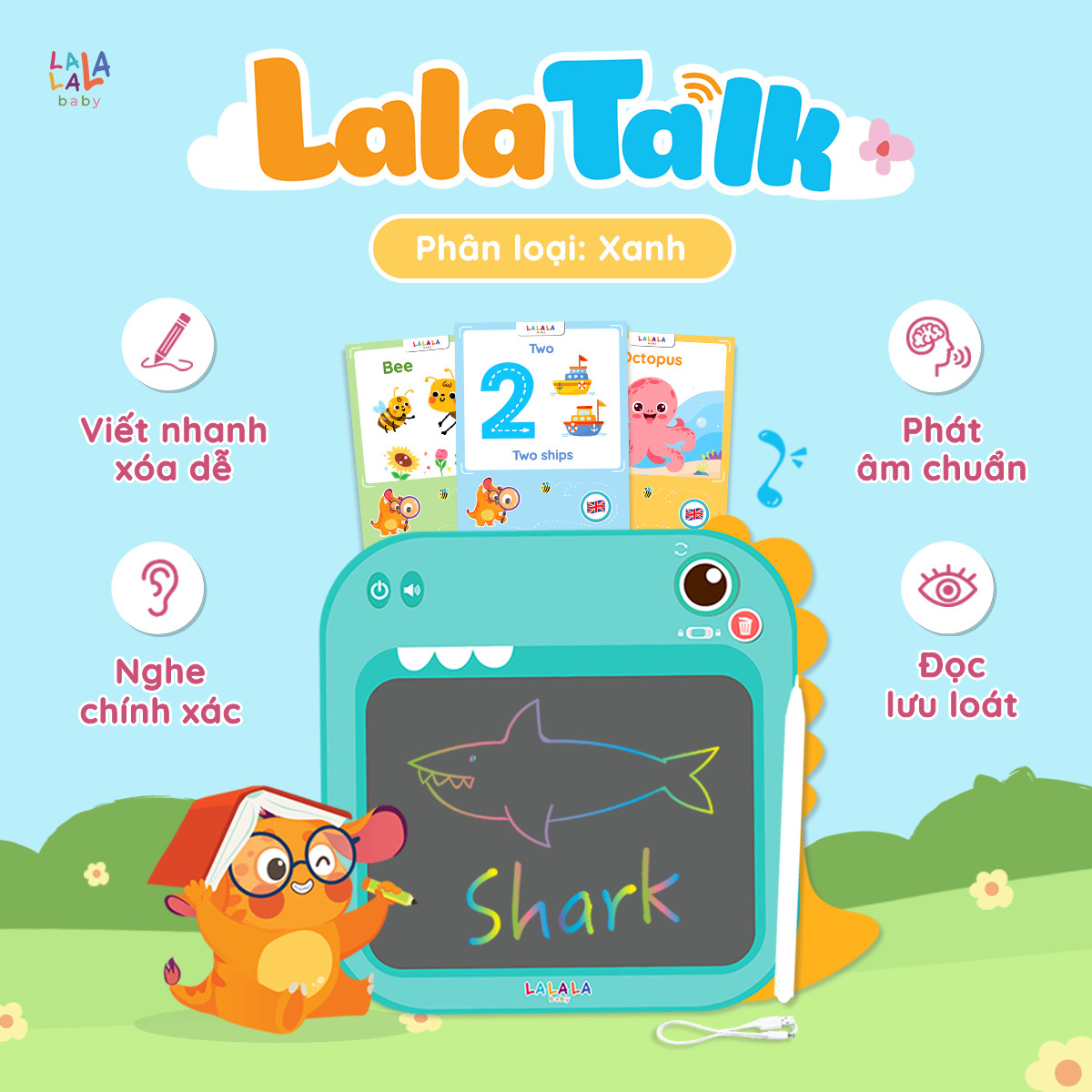 Mua tại TiktokMáy Đọc Thẻ Song Ngữ Anh Việt Lalatalk Kết Hợp Bảng Viết Tự Xóa Thông Minh Lalala Baby Việc học song song hai ngôn ngữ tiếng Việt và tiếng Anh đã không còn xa lạ. Đối với bé dưới 6 tuổi, tiếp thu ngôn ngữ sẽ diễn ra tự nhiên và thoải mái thông qua việc vui chơi. Không chỉ phát nhạc và âm thanh, LalaTalk còn có phần bảng viết xóa thông minh, giúp bé tập viết chữ cái, chữ số và từ vựng. Nghe - nói - đọc - viết, giỏi tiếng Việt lại thạo tiếng Anh, hãy để Máy đọc viết Lalatalk máy đọc thẻ song ngữ kết hợp bảng viêt tự xóa thông minh đồng hành cùng bé và ba mẹ Đặc điểm và công dụng máy đọc thẻ song ngữ Anh Việt kết hợp bảng tự xóa Lalatalk: