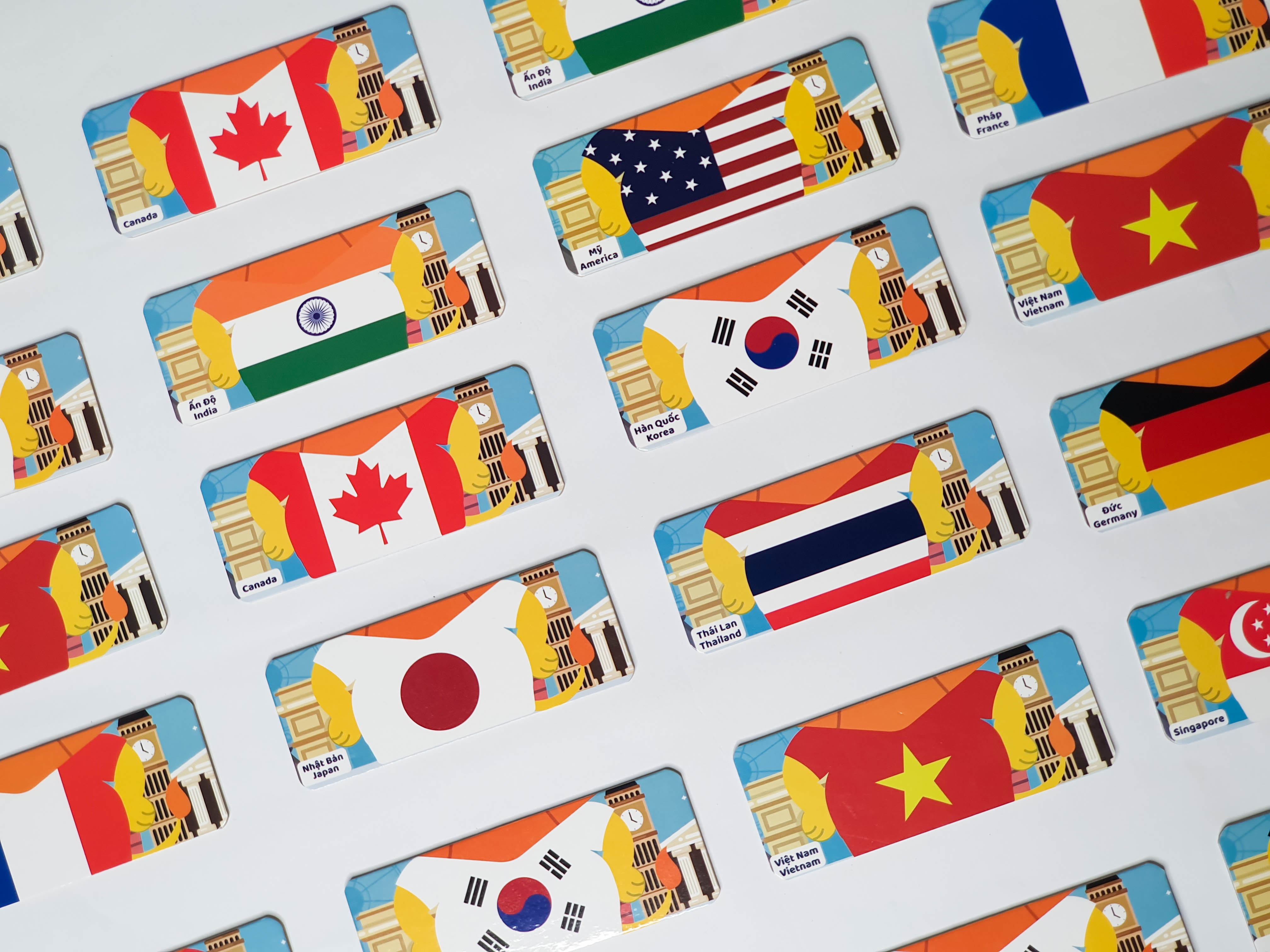 Nội dung: 4 bảng sư tử. 40 thẻ cờ các nước.