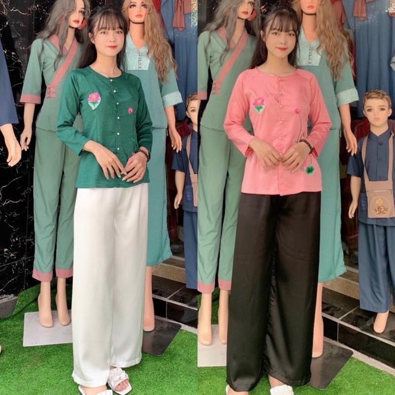 ✨Đồ Lam Đi Chùa # Bà Bà Thêu Hoa Lụa Pháp Cao Cấp # Quần Áo Nữ # Đồ Bộ Nữ