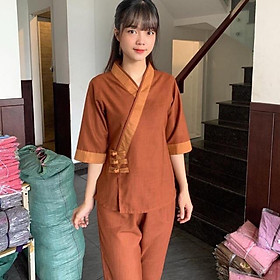SET ĐỒ LAM ĐI CHÙA ÁO BÀ BA KÈM QUẦN DÀI CHẤT GẤM