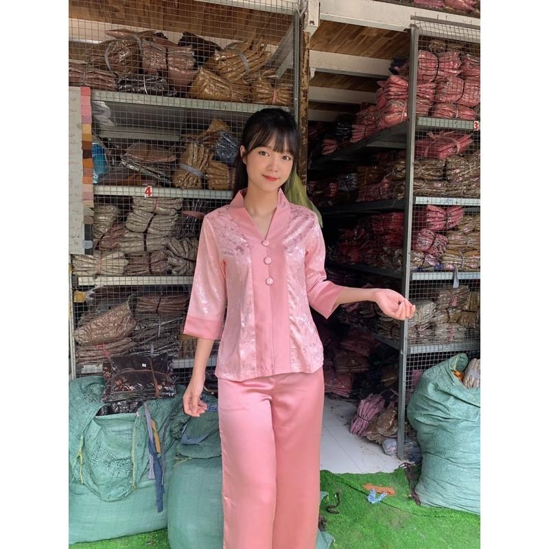 Chất Vải Lụa Pháp Phối Gấm Cao Cấp Hoặc Vải Lụa Phối Gấm Tuỳ Màu Và Size Nên Chất Vải Khác Nhau Quần Ống Rộng Cổ Áo Chui Không Cài Nút BÁN LẺ GIÁ SỈ