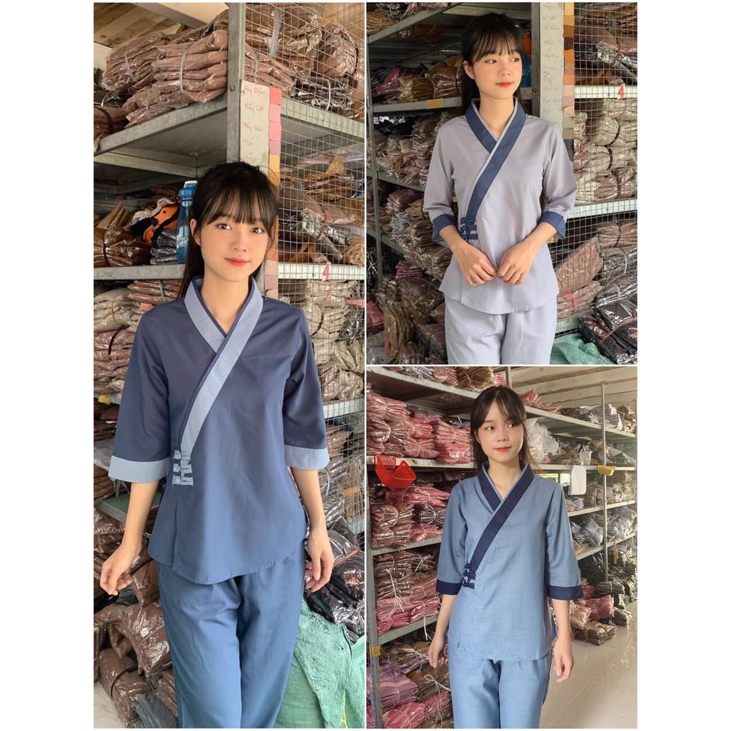 Hình ảnh chi tiết bộ đồ lam đi chùa là Shop tự chụp + Video shop tự quay.
