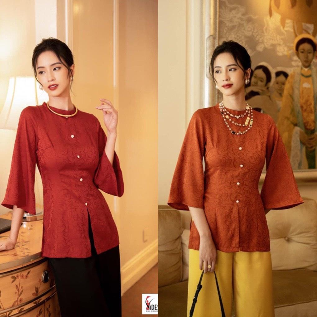 Chất Vải Lụa Pháp Phối Gấm Cao Cấp Hoặc Vải Lụa Phối Gấm Tuỳ Màu Và Size Nên Chất Vải Khác Nhau Quần Ống Rộng Cổ Áo Chui Không Cài Nút BÁN LẺ GIÁ SỈ
