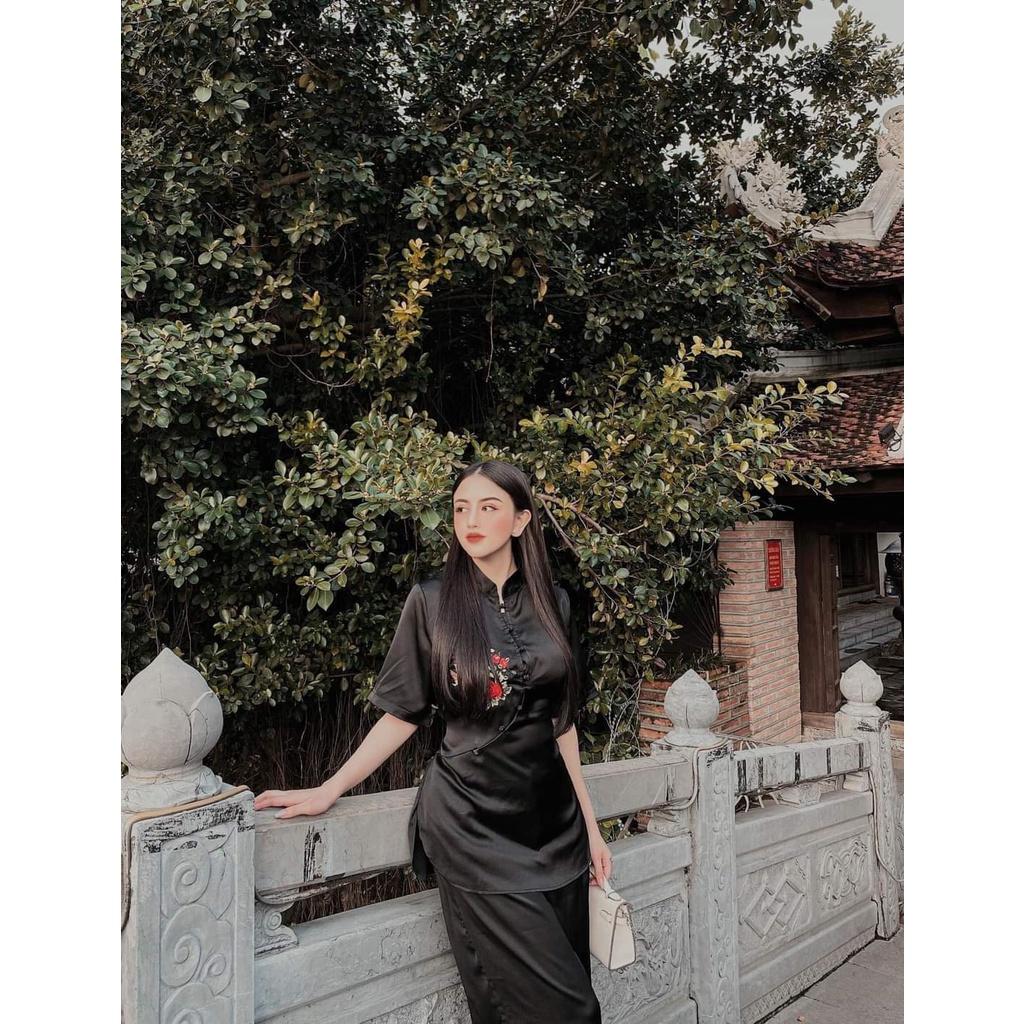 Đồ lam đi chùa cho nữ - Set mẫu xẩm quạt thêu Hoa chất liệu lụa trượt cao cấp phong cách lịch sự