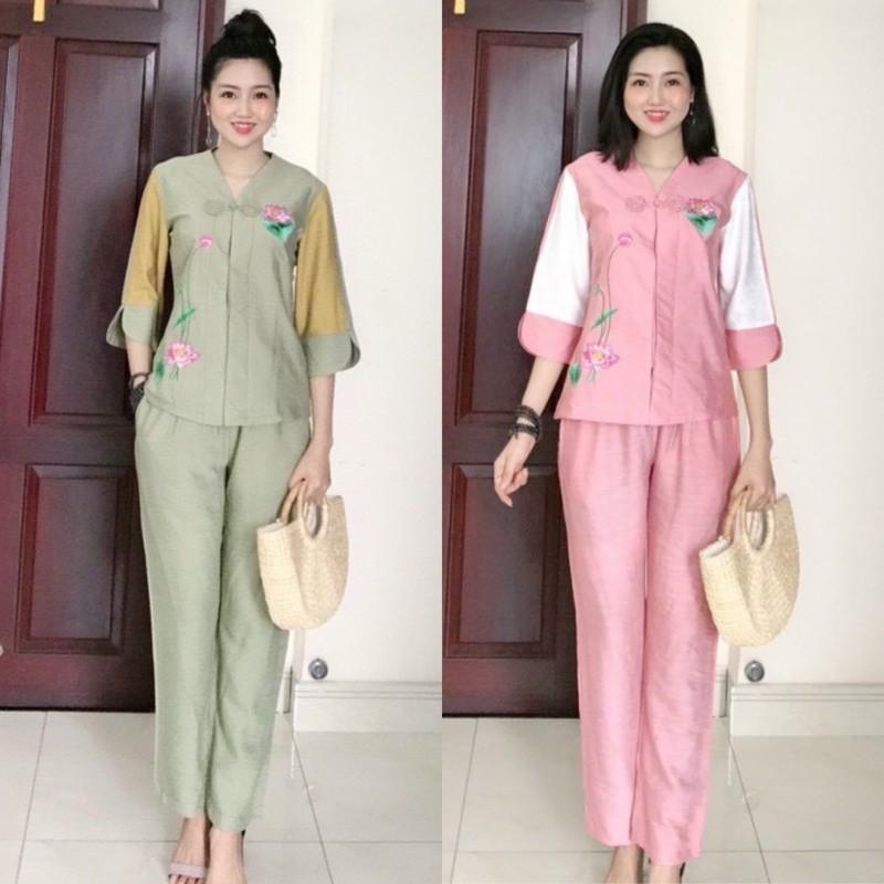 ✨Đồ Lam Đi Chùa # Tim 1Nút Bông Cao Cấp# Quần Áo # Đồ Bộ Nữ