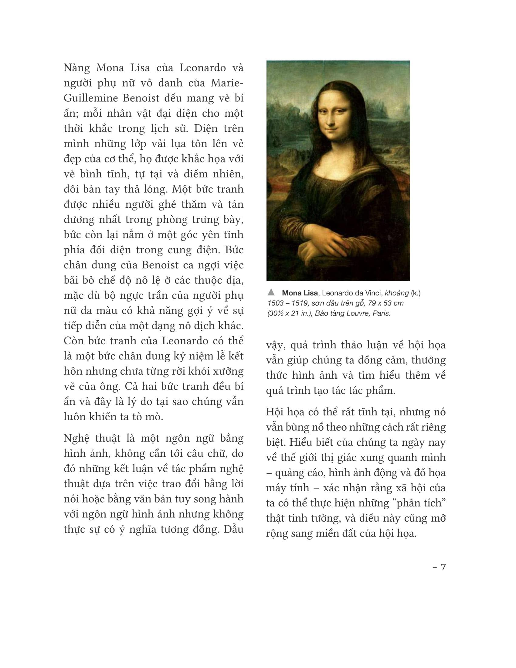 Nội dung “Đọc hiểu tác phẩm hội họa” được trình bày song song với hình ảnh minh họa sống động, góp phần khơi gợi trí tưởng tượng của độc giả. Có những bức tranh quen thuộc nhưng cũng có những bức tranh còn khá mới lạ với công chúng Việt Nam được tái hiện trong sách, mang đến một góc nhìn khác về hội họa phương Tây.