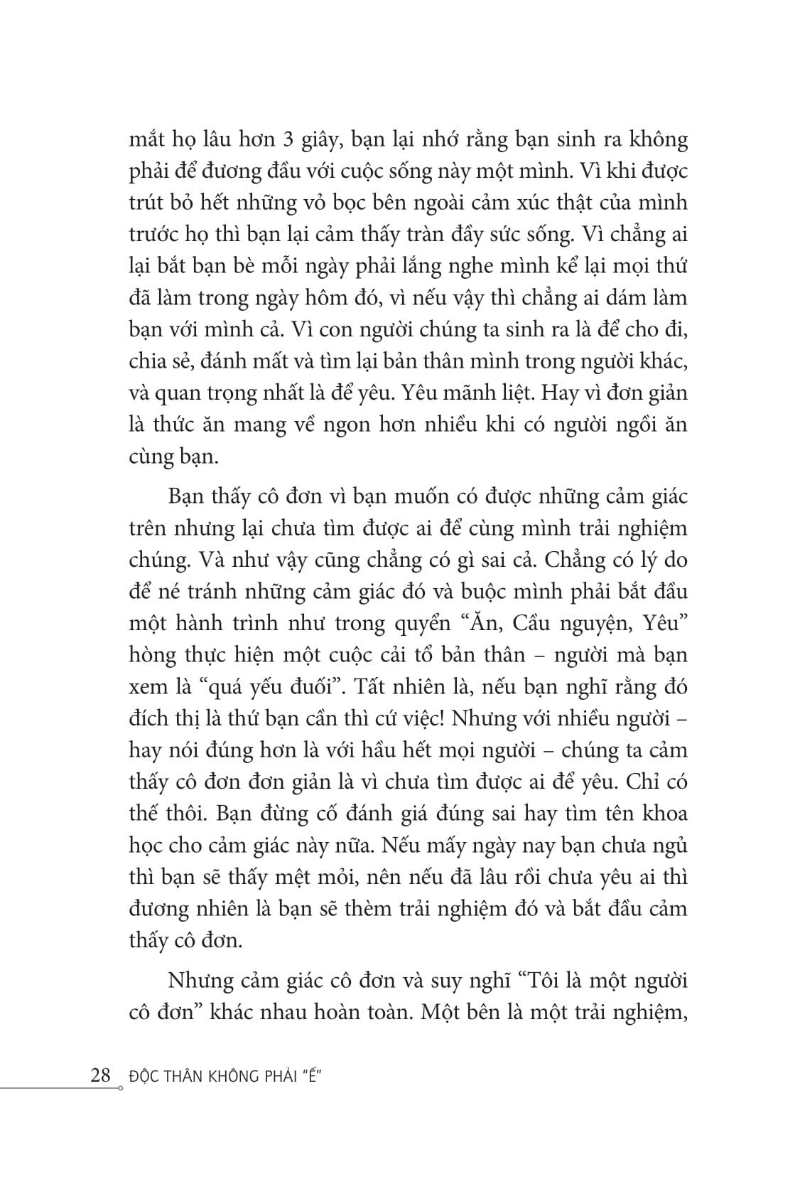 Cuốn sách “Độc Thân Không Phải Ế” dành cho bất kỳ ai đang cảm thấy vô vọng, cô đơn hay nản chí và không biết phải làm gì để cải thiện tình hình.