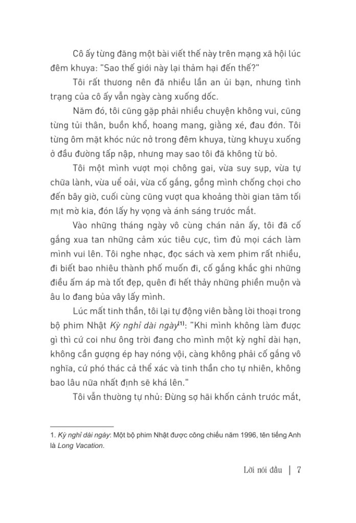 Tôi vẫn thường tự nhủ: Đừng sợ hãi khốn cảnh trước mắt, cũng đừng để đau khổ bủa vây, phải thoải mái tinh thần, coi thường khó khăn, tiến bước với tâm thái tích cực, khắc ghi những niềm vui bé nhỏ trong cuộc sống.