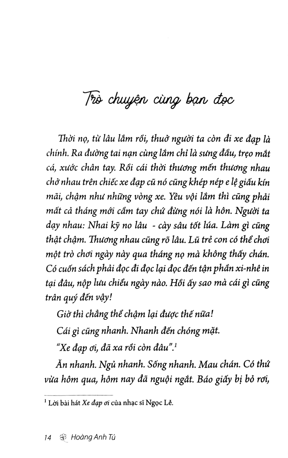 Đời vội vã càng nên sống chậm là cuốn sách mới nhất của Hoàng Anh Tú dành cho phụ nữ. Mỗi bài viết đều tiếp cận một vấn đề cụ thể, từng bước từng bước lắng nghe sự trải lòng của phụ nữ, từng bước gỡ rối những vướng mắc trong chính suy nghĩ của phụ nữ, từ đó chữa lành trái tim nhiều tổn thương của phụ nữ - đôi khi, những tổn thương đó là do chính họ tự làm mình đau, tự mình vướng mắc. Buông bỏ, yêu bản thân, sống tích cực bởi suy nghĩ tích cực…, đó có lẽ là liều thuốc cho trái tim phụ nữ, để họ biết yêu đời, làm vợ hạnh phúc và làm mẹ hạnh phúc.