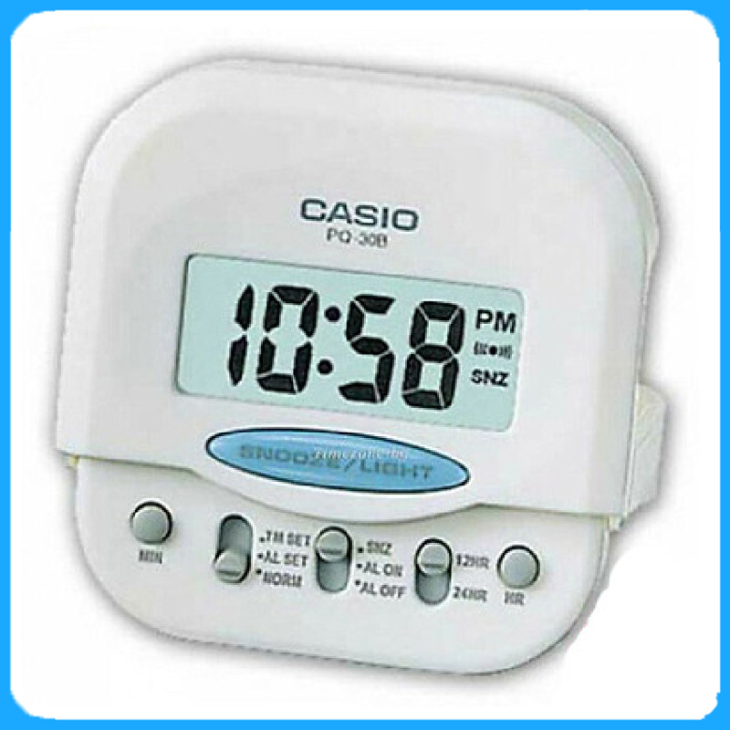 Đồng hồ báo thức du lịch - để bàn điện tử Casio PQ-30B-1DF có thiết kế đẹp và nhỏ gọn hiện thị đầy đủ tính năng xem giờ, báo thức có đèn LED. Đồng hồ