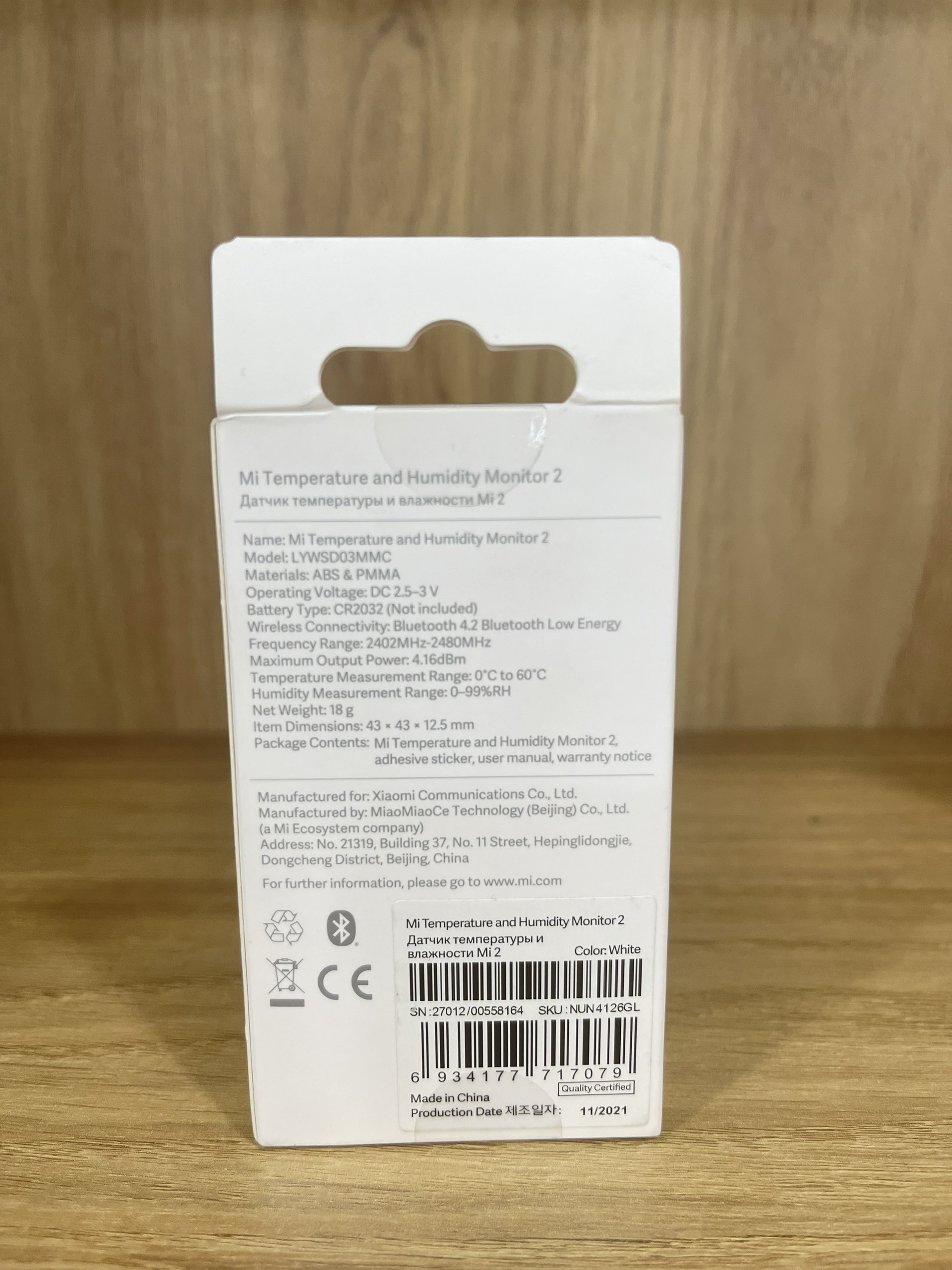 - Đồng hồ nhiệt kế cảm biến nhiệt độ và độ ẩm thông minh MI Temperature and Humidity Monitor 2 được trang bị chế độ nhiệt độ, độ ẩm thông minh phù hợp với sức khỏe của trẻ. Khi phát hiện nhiệt độ, độ ẩm vượt quá vùng thoải mái của bé, App thông minh sẽ tự động nhắc nhở và đề xuất những thay đổi giúp bạn có thể kịp thời điều chỉnh bảo vệ sức khỏe bé tốt hơn. ✪ Thông số chi tiết của sản phẩm: • Chất liệu: ABS, PMMA • Kích thước: 43 x 43 x 12.5mm • Điện áp: DC2.5V – 3V • Loại pin: CR2032 • Kết nối không dây: Bluetooth 4.2 BLE • Phạm vi đo nhiệt độ: 0ºC ~ 60ºC • Độ chính xác nhiệt độ: 0.1 ºC • Phạm vi đo độ ẩm: 0%RH - 99%RH • Độ chính xác độ ẩm: 1%RH