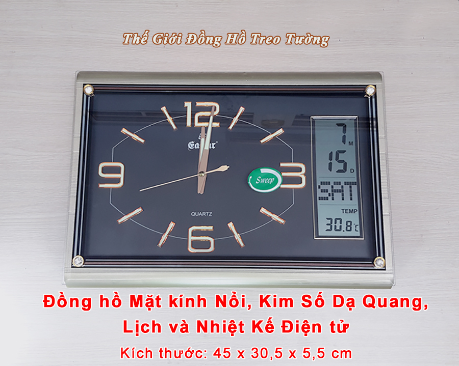 - Đồng Hồ Treo Tường Cao Cấp EASTAR Kim điện tử, Dạ quang, Đồng hồ Lịch Vạn Niên và Nhiệt kế hình Chữ nhật, Mặt kính Nổi, hiện đại, sang trọng.