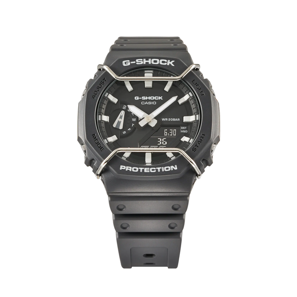 Chào mừng đến với mẫu G-SHOCK “tông suyệt tông” – chiếc đồng hồ hoàn hảo cho phong cách thời trang mới nhất với bảng màu đơn sắc được ưa thích. Màu tự nhiên với lớp hoàn thiện nhám mờ, được nhấn nhẹ bằng lớp bảo vệ mặt đồng hồ kim loại cùng tông màu. Lớp bảo vệ dây kim loại trên mặt đồng hồ là điểm phá cách mới cho dòng 2100. Chọn trong số ba mẫu đồng hồ: DW-5600 góc cạnh, DW-5700 bo tròn và GA-2100 có gờ bát giác.