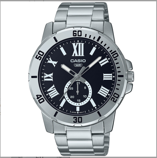 Đồng hồ Casio MTP-VD200BL-5BUDF thuộc Casio nam với dây da, nhiều kim, chống nước, mặt số la mã.