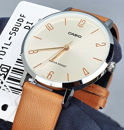 Đồng Hồ Casio Cặp Đôi MTP-VT01L-1BUDF & LTP-VT01L-1BUDF Dây Da - Mặt Số La Mã - Chống Nước.