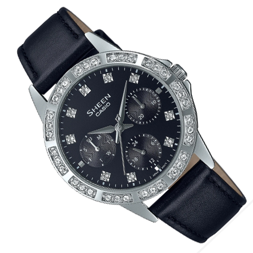 Đồng Hồ Casio Sheen SHE-4533PGL-1AUDF - Nữ - Dây Da Màu Đen - Mặt Kính Saphia