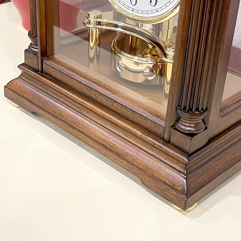 Quả lắc xoay mạ vàng sáng bóng. thiết kế 3 mặt kính trong suốt, mặt sau mica trong suốt càng tôn thêm vẻ lịch lãm cổ điển châu âu.