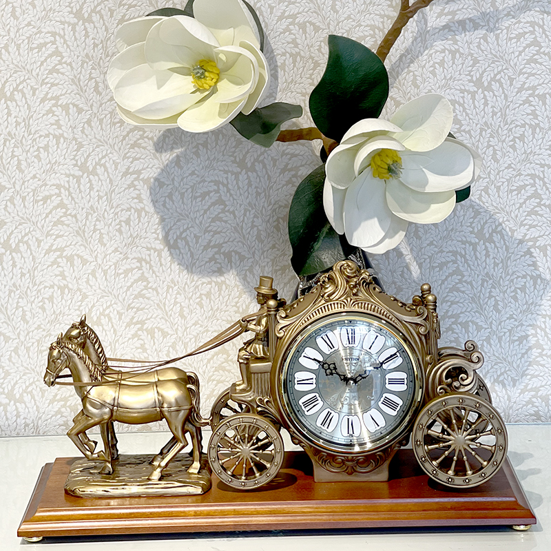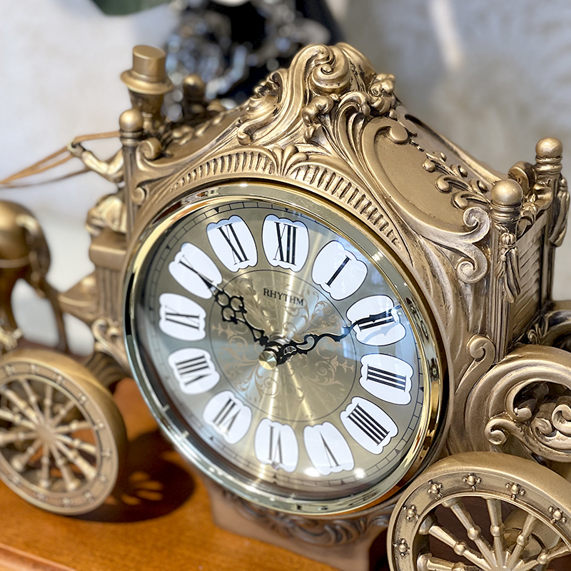 Mua tại TiktokĐồng hồ để bàn Rhythm cỗ xe ngựa CRH229NR18, dùng 2 pin ( AA x 2) vỏ polyresin nhũ vàng, đế gỗ . Kích thước 48.5 x 24.5 x 18.5cm, trọng lượng 3.6kg. Âm thanh thính phòng SIP ( Sound In Palace ) với 24 bản nhạc cổ điển, 6 bản giáng sinh. Có núm chỉnh âm lượng tiện lợi. Cảm ứng ánh sáng tự động không phát nhạc khi thiếu sáng.