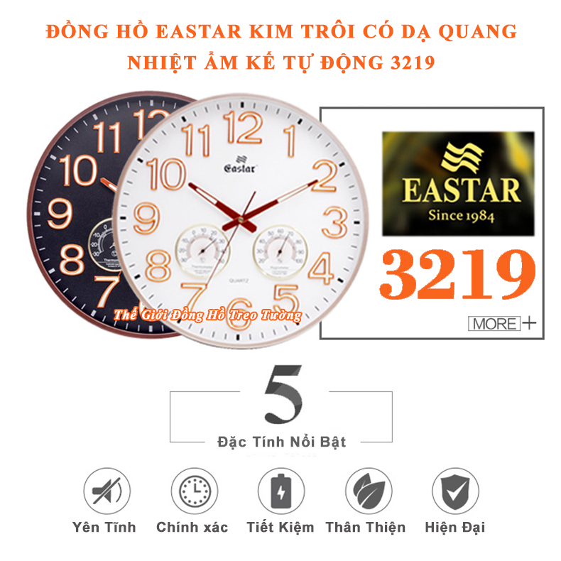 ✨Đồng Hồ EASTAR Mặt Tròn có DẠ QUANG và Đồng hồ CƠ Đo NHIỆT ĐỘ & ĐỘ ẨM - Máy KIM TRÔI - Tặng Pin Maxell