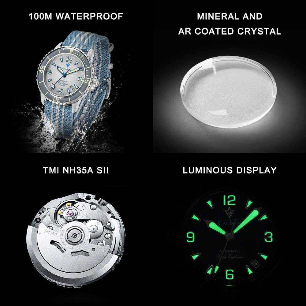 ✨Đồng Hồ Nam Cadisen C8239M3 Chính Hãng Full Box Chống Nước Kính Chống Xước Dây Vải BH 2 Năm Máy Cơ