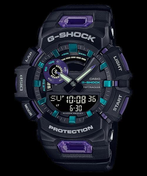 Các tính năng Giới thiệu các mẫu G-SQUAD bổ sung mới nhất cho đồng hồ Kết nối điện thoại thông minh Dòng GBA-900. Mẫu này có thể đo khoảng cách bằng gia tốc kế trong khi kết nối với chức năng GPS của điện thoại thông minh qua Bluetooth. Sau khi đã tiến hành đo bằng điện thoại thông minh, lần tiếp theo bạn có thể đo khoảng cách chỉ bằng đồng hồ. Các phép đo khoảng cách và thời gian chạy được sử dụng để tính toán nhịp độ của bạn và tính năng vòng chạy tự động ghi lại thời gian cần thiết để vượt qua một khoảng cách cụ thể. Bạn cũng có thể kiểm tra lịch sử hoạt động của mình bằng cách kết nối với một ứng dụng đang chạy trên điện thoại thông minh. Ứng dụng này cũng giúp đơn giản hóa cấu hình cài đặt đồng hồ và quản lý tập luyện. Đồ thị cường độ tập luyện 5 cấp độ và tỉ lệ đạt được mục tiêu hàng ngày giúp bạn luôn có động lực tập luyện. Đèn chiếu sáng mặt đồng hồ cực mạnh giúp dễ đọc thông tin trên mặt đồng hồ ngay cả trong bóng tối. Vật liệu uretan mềm của dây đeo giúp đồng hồ vừa vặn hơn với cổ tay và lỗ thông hơi tăng cường khả năng thông khí. Đồng hồ này kết nối với điện thoại của bạn qua Bluetooth để hỗ trợ điều chỉnh thời gian tự động, thông báo qua điện thoại, đếm bước chân và các chức năng khác suốt cả ngày. Tuổi thọ pin đạt xấp xỉ hai năm giữa các lần thay thế.