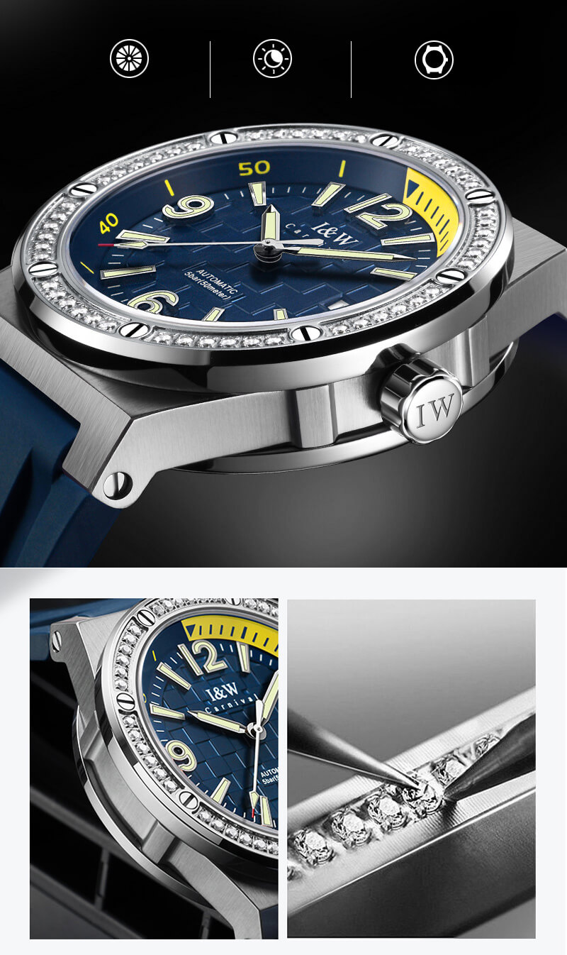 Đi sâu vào bộ máy bên trong, “Trái tim” của IW CARNIVAL IW661G-3 là cỗ máy cải tiến với 21 chân kính, tích hợp tính năng lên cót tay và lên cót tự động. Độ chịu nước 5ATM dùng trong sinh hoạt hằng ngày như : đi mưa,rửa tay,rửa đồ...
