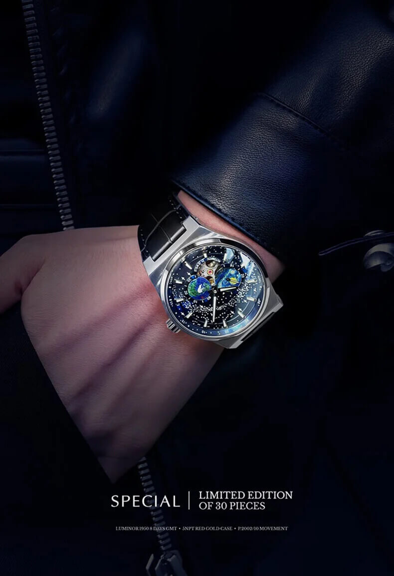 Sự kết hợp hoàn hảo đến khó tin của mặt dial vạn vì sao lấp lánh như bầu trời trong đêm cùng với sự sáng tạo kim giây mô phỏng vòng quay của Trái Đất không ngừng nghỉ (đặc sắc hơn với dạ quang siêu sáng ban đêm)