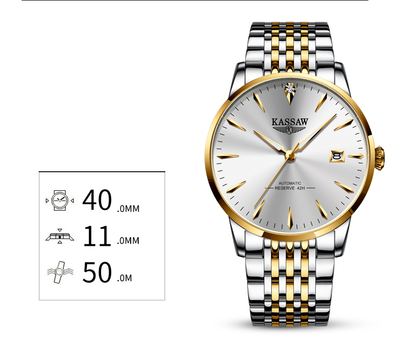 Đồng hồ nam chính hãng Kassaw Thụy Sỹ Thiết kế sang trọng, đẳng cấp cho quý ông Thời gian trữ cót lâu lên đến 40h Chống nước 5ATM, Kính sapphire Toàn bộ máy được làm