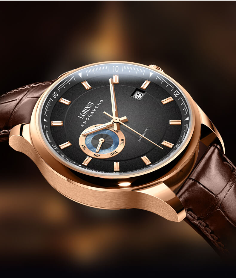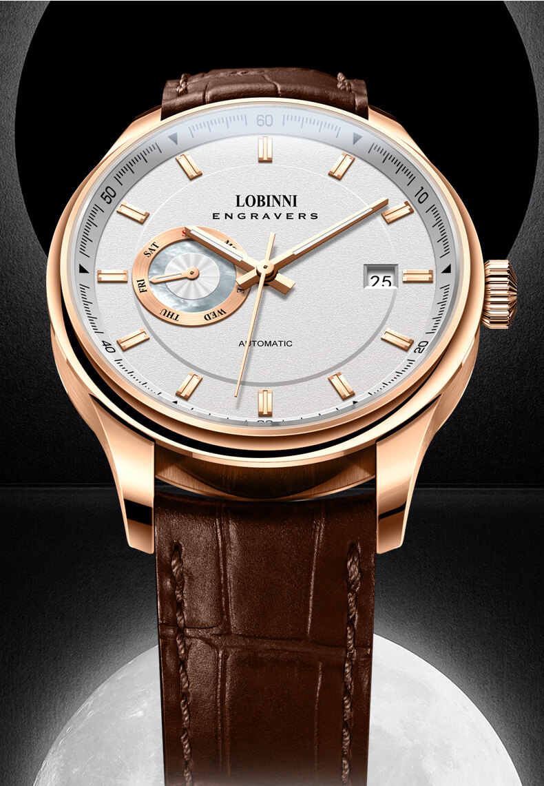 Đồng hồ nam chính hãng LOBINNI Thụy Sỹ Thiết kế sang trọng, đẳng cấp cho quý ông Thời gian trữ cót lâu lên đến 40h Chống nước 5ATM, Kính sapphire Toàn bộ máy được làm