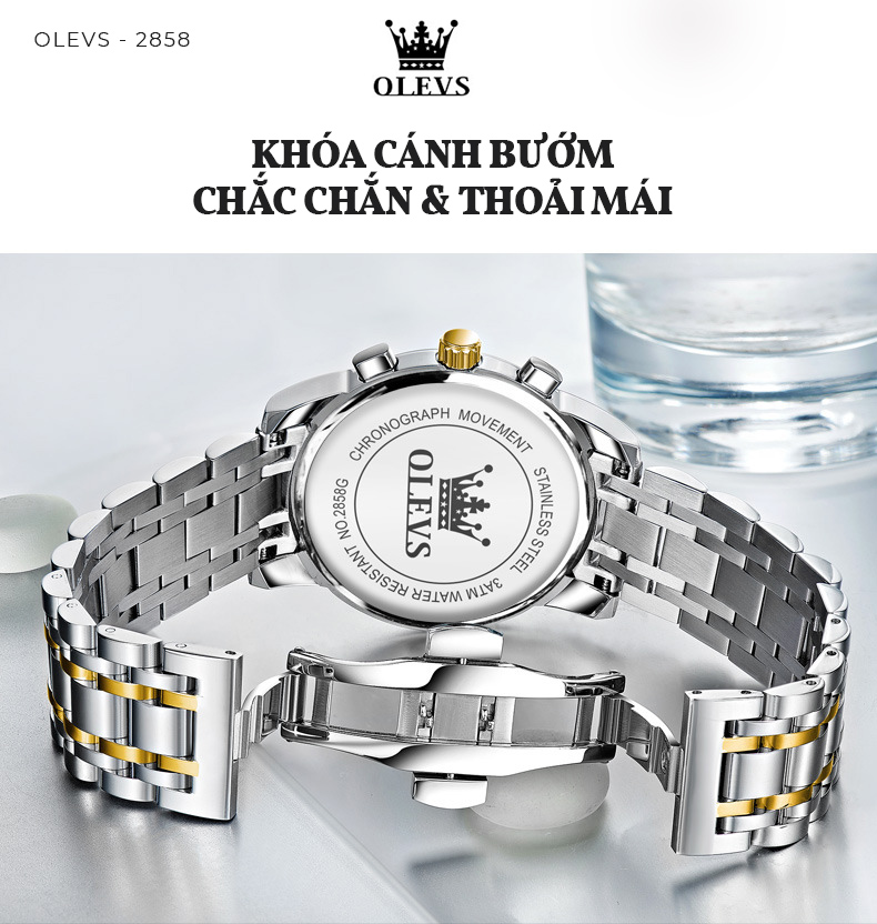 ✨Đồng Hồ Nam OLEVS-2858 Mặt Tròn Mạ Vàng 18k Chống Nước Chạy Đủ 6 Kim Có Ô Lịch Ngày Khóa Bướm Có Hộp In Logo Chính Hãng