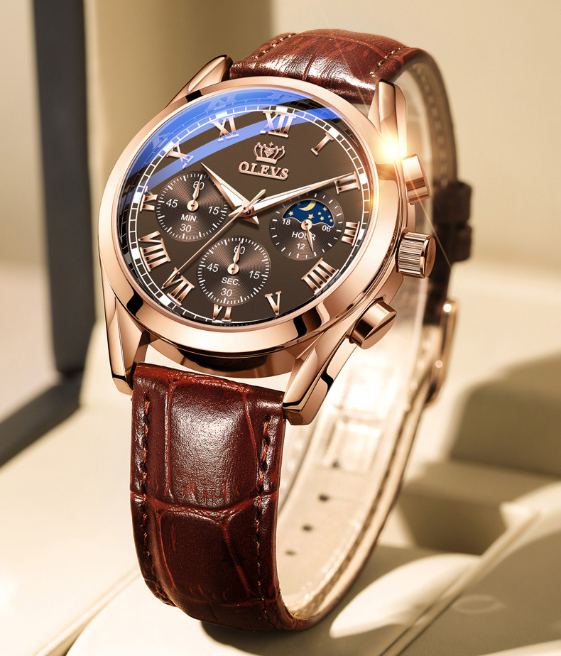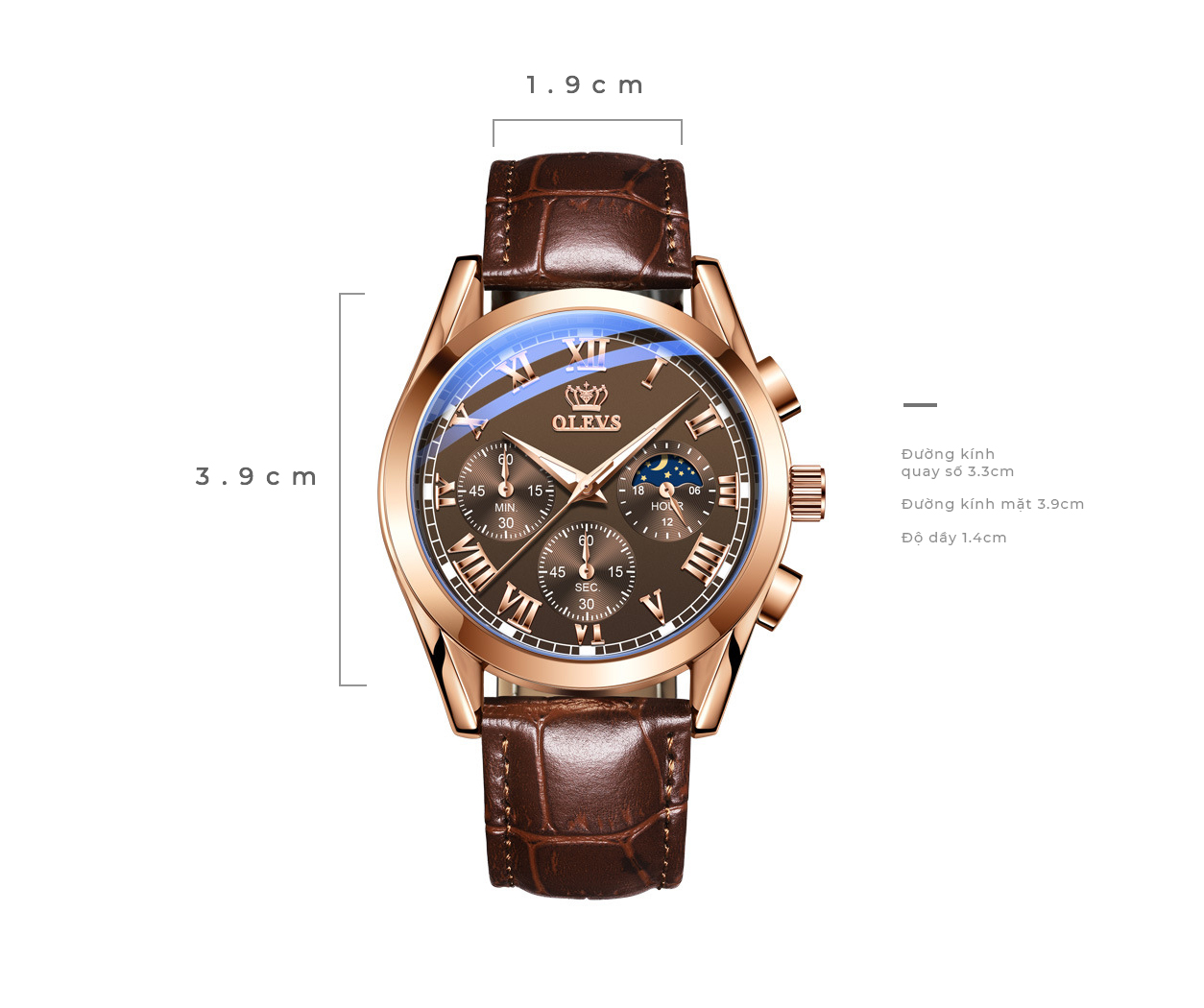 Đồng Hồ Nam OLEVS-2871 Phong Cách Doanh Nhân - Lịch Trăng Sao - Chạy Đủ 6 Kim - Hàng Chính Hãng