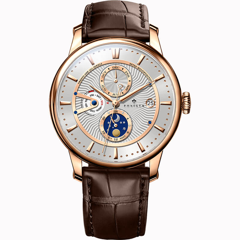 ♪ Sự pha trộn tinh tế đầy bất ngờ và xen lẫn giữa phong cách hiện đại, cổ điển là yếu tố làm nên sự hiện diện của phiên bản đồng hồ PONIGER P813-1 tại Việt Nam, dành riêng cho nam giới.