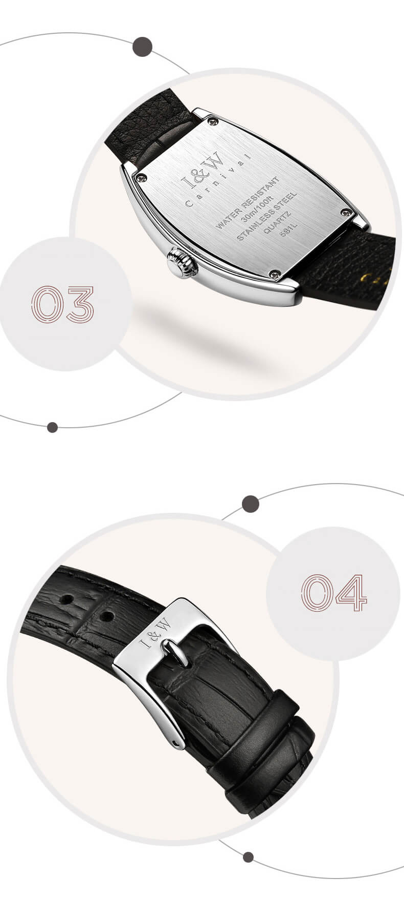 ✨Đồng Hồ Nữ I&W Carnival 581L Chính Hãng BH 24T Chịu Nước 30m Kính Chống Xước Dây Da Cao Cấp ( Máy Quartz)