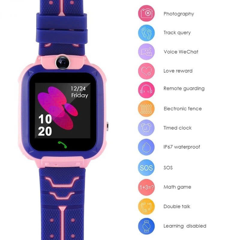 - Đồng hồ Thông minh Q12 là thiết bị liên lạc dành riêng cho Trẻ em. Ngoài chức năng cơ bản là gọi điện thoại thì chiếc Đồng hồ Thông minh còn giúp cha mẹ quản lý con cái, bảo vệ con cái từ xa nhằm giúp con trẻ có được những hoạt động vui chơi và học tập lành mạnh. Chức năng cơ bản của Đồng hồ bao gồm: Gọi điện thoại 2 chiều, chặn số lạ ngoài danh bạ, SOS khẩn cấp khi gặp nguy hiểm, nhắn tin 2 chiều bằng giọng nói với cước phí siêu rẻ, nghe âm thanh từ xa, chụp ảnh từ xa, hẹn giờ báo thức, khóa đồng hồ khi trẻ đang học và nhiều chức năng phụ rất có ích dành cho Cha mẹ Lưu ý: Không nên sử dụng sim Mobi, Intel vì sóng Mobi, Intel chập chờn không tương thích với đồng hồ CHỨC NĂNG CỦA ĐỒNG HỒ Gọi thoại 2 chiều như điện thoại Smarphone, danh bạ lưu 10 số, chặn số lạ ngoài danh bạ Nhắn tin thoại 2 chiều Miễn phí: Chức năng nhắn tin thoại tiện lợi qua giọng nói, phụ huynh cũng có thể gửi tin thoại và tin nhắn Văn bản cho trẻ SOS khẩn cấp: Chức năng này giúp trẻ gọi nhanh đến 3 số liên lạc của người thân khi gặp những tình huống nguy hiểm như bắt cóc, bạo hành, tai nạn Chỉ cần trẻ bấm giữ nút SOS trong 5s thì ngay lập tức đồng hồ sẽ gọi liên tục đến số liên lạc của người thân Nghe Âm thanh từ xa: Chức năng nghe mọi âm thanh xung quanh trẻ mà trẻ và mọi người xung quanh không biết Chụp ảnh từ xa: Chức năng cho phép cha mẹ chụp ảnh từ xa để thấy được mọi hình ảnh xung quanh trẻ Định vị: Cơ cấu định vị LBS Khóa đồng hồ từ xa: Nếu phụ huynh lo lắng về việc trẻ nghịch đồng hồ khi học bài thì đã có chức năng hẹn giờ khóa, mở để trẻ tập trung học tập Time: Chức năng xem giờ, hẹn giờ, báo thức Phần thưởng: Chức năng động viên trẻ, tạo cho trẻ sự hứng thú trong học tập, vui chơi THÔNG SỐ CHI TIẾT SẢN PHẨM