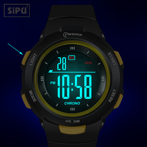 - Đổi hàng trong vòng 7 ngày kể từ ngày nhận hàng nếu lỗi do NSX HƯỚNG DẪN SỬ DỤNG: Cơ bản của một mẫu đồng hồ thể thao ta có: 4 Nút: Light Start Mode Reset 2 Phân vùng: Giờ/phút/Giây Thứ/ngày <>Các chức năng và hướng dẫn: +Xem lịch: -Nhấn giữ Start để xem lịch +Xem giờ báo thức -Nhấn giữ Reset để xem +Bấm giờ: -Bấm Mode một lần bạn sẽ thấy 00:00:00 ở phân vùng Giờ/Phút/Giây, SU/SA/FR ở vùng Thứ/ngày sẽ sáng lên báo đồng hồ bấm giờ đang giới hạn. -Bấm Start để bắt đầu đếm, muốn trợ thời giới hạn bạn bấm Start một lần nữa, để tiếp diễn lại bạn tiếp diễn bấm Start. -Để trả về 0 hoặc chấm dứt bấm giờ bạn bấm Reset. +Báo thức: -Bấm Mode 2 lần, bạn sẽ nhận ra thời kì mà đồng hồ sẽ báo thức. -Bấm Reset để chuyển thành phần chỉnh chỉnh giờ/phút bấm Start để tăng giờ/phút -Lưu ý: khi bấm Reset/Start báo thức sẽ được bật. -Để bật tắt chức năng báo thức bạn khiến như sau: -Nhấn giữ hai nút Light + Reset -Trong khi giữ bấm tiếp Start để bật/tắt báo thức -Đồng hồ sẽ kêu Beep khi tắt báo thức +Báo giờ: (Mỗi khi tròn giờ đồng hồ sẽ báo “Beep”) -Để bật tắt Anh chị em khiến như sau: -Nhấn giữ Reset (Đồng hồ sẽ bây giờ báo thức) -Trong lúc đè bấm Mode để bật tắt báo giờ. (Ở phân vùng thứ/ngày: toàn bộ ngày đều sáng báo hiệu chức năng đang bật và ngược lại) +Chỉnh giờ: -Bấm Mode 3 lần để vào màn hình chỉnh giờ. -Bấm Reset để chuyển thành phần chỉnh. -Bấm Start để tăng 1 tổ chức. Lưu ý: thứ tự chuyển: Giây – Phút – Giờ – Ngày – Tháng – Thứ NHỮNG ĐIỀU NÊN TRÁNH KHI SỬ DỤNG ĐỒNG HỒ: