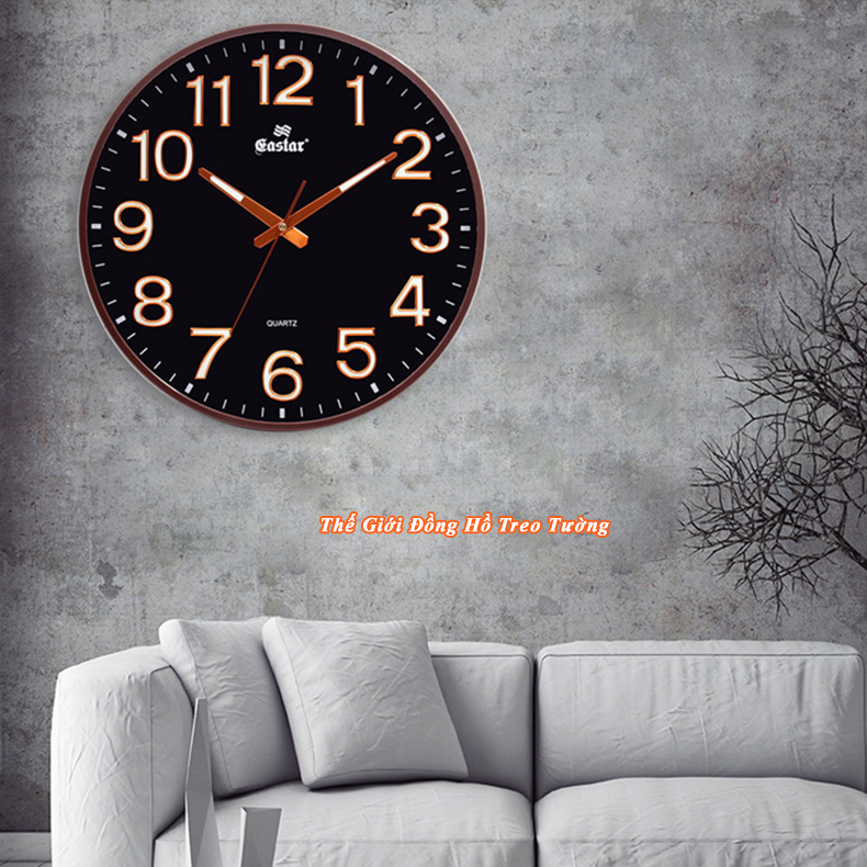 Đồng hồ Cao cấp, Máy Đồng hồ Kim trôi, Số nổi 3D có Dạ quang (*), kiểu dáng hiện đại với Đường kính 38 cm, dày 5 cm.