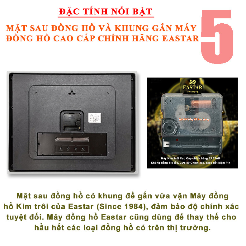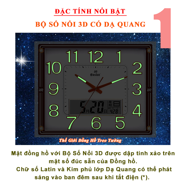 ✨Đồng hồ Treo Tường EASTAR Kim Điện Tử KIM TRÔI Cao Câp DẠ QUANG - LỊCH Vạn Niên và NHIỆT KẾ Điện Tử