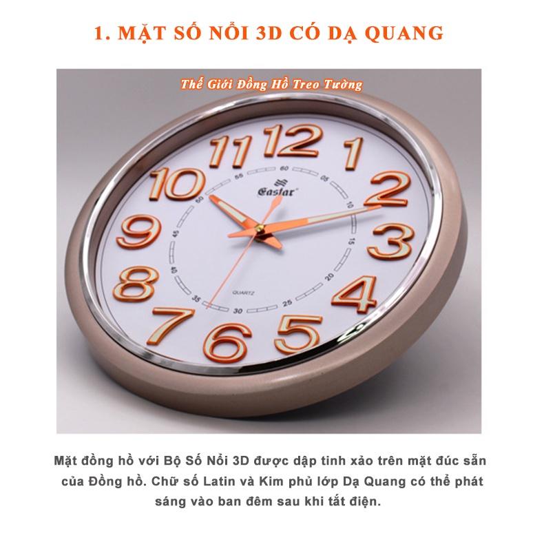 ✨Đồng hồ Treo tường EASTAR KIM TRÔI Tròn có DẠ QUANG - Bảo hành 1 năm - Tặng Pin Maxell