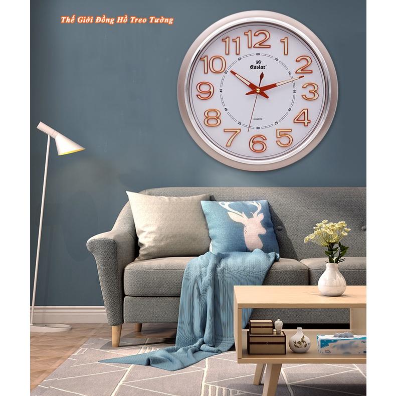 Đồng Hồ Treo Tường EASTAR - Kích Thước 33.5cm - Máy Kim Trôi - Kim Số Dạ Quang Trong Đêm