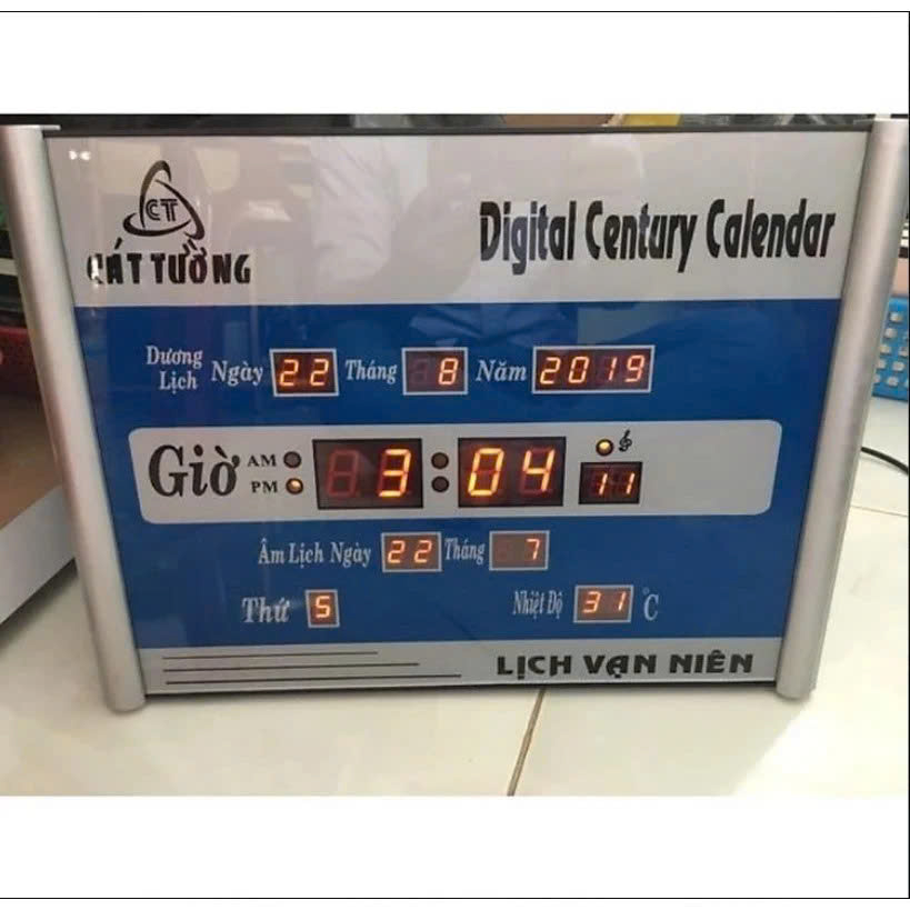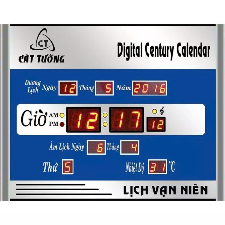 Đồng hồ treo tường Thông Tin Sản Phẩm Lịch Vạn Niên Cát Tường 3A sở hữu led điện tử sử dụng điện cùng kích thước nhỏ gọn đơn giản nhưng vẫn hiển thị đầy đủ