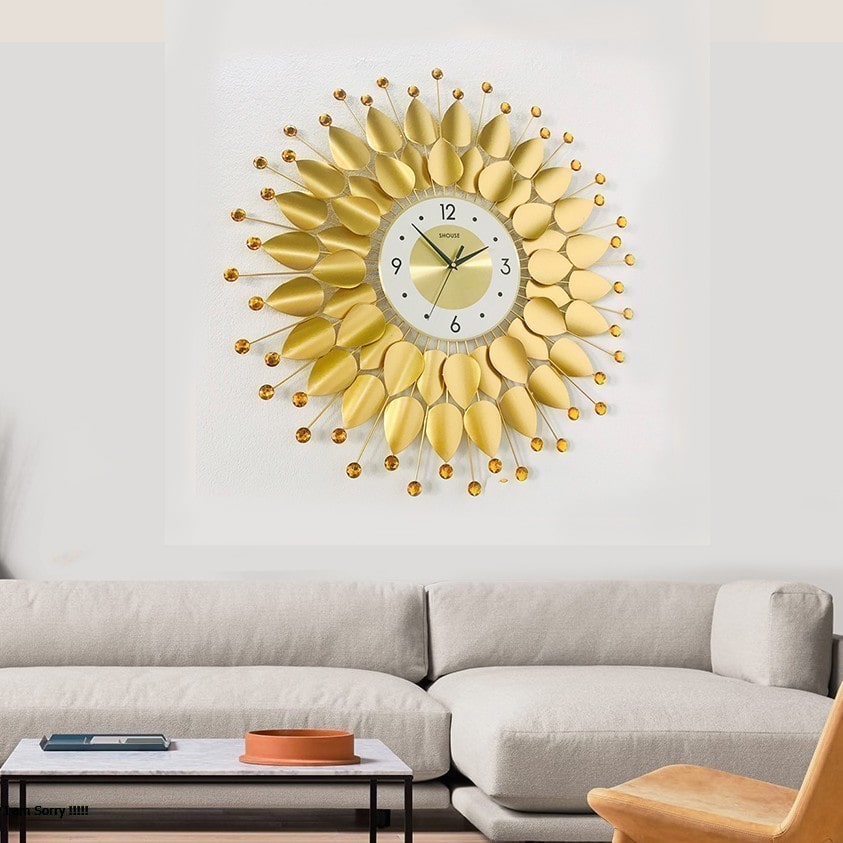Đồng Hồ Treo Tường Trang Trí Nghệ Thuật Cao Cấp Shouse DC666 hiện đại 3D kích cỡ lớn đẹp kim trôi, chất liệu kim loại       Các mẫu đồng treo tường được thiết kế sáng tạo đang là xu hướng nội thất tạo điểm nhấn cho phòng khách, được nhiều gia đình yêu thích. Mỗi gia chủ đều mong muốn kiến thiết không gian sống, nhất là phòng khách, trở nên mới lạ và thu hút hơn, nhằm thể hiện dấu ấn cá nhân và nâng cao hiệu quả thẩm mỹ cho mái ấm. Nếu bạn đang có ý định trang hoàng phòng khách trong dịp năm mới, đồng hồ trang trí là lựa chọn tốt để tạo điểm nhấn sang trọng. Xu hướng trang trí sang trọng Xu hướng trang trí đồng hồ nghệ thuật là một trong những lựa chọn được không ít gia chủ yêu thích. Một chiếc đồng hồ treo tường đẹp không chỉ giúp theo dõi thời gian, mà còn trở thành đồ trang trí nội thất nổi bật. Với kiểu dáng thiết kế độc đáo và mới lạ, mỗi sản phẩm đều mang tới điểm nhấn khác lạ trong trang trí kiến trúc nội thất. Gợi ý một số mẫu đồng hồ trang trí nội thất đẹp Nếu yêu thích phong cách trẻ trung và cá tính, bạn không nên bỏ qua mẫu thiết kế đồng hồ trang trí hiện đại. Với thiết kế mới lạ và mạnh mẽ, mẫu thiết kế này mang tới cho căn hộ sự phóng khoáng và sang trọng. Sản phẩm được thiết kế tinh xảo. Với tone màu vàng và bạc lấp lánh, chất liệu thép chống gỉ, đây sẽ là món đồ mang lại nét sang trọng cho không gian sống.