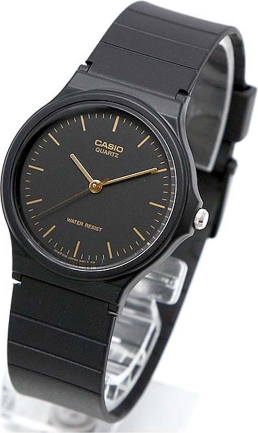 Đồng hồ Casio MQ-24-1ELDF có thiết kế đơn giản và thanh lịch với dây nhựa đen cao cấp mềm đeo rất thoải mái, vạch chỉ giờ mạ vàng trên nền đen tạo vẻ sang trọng