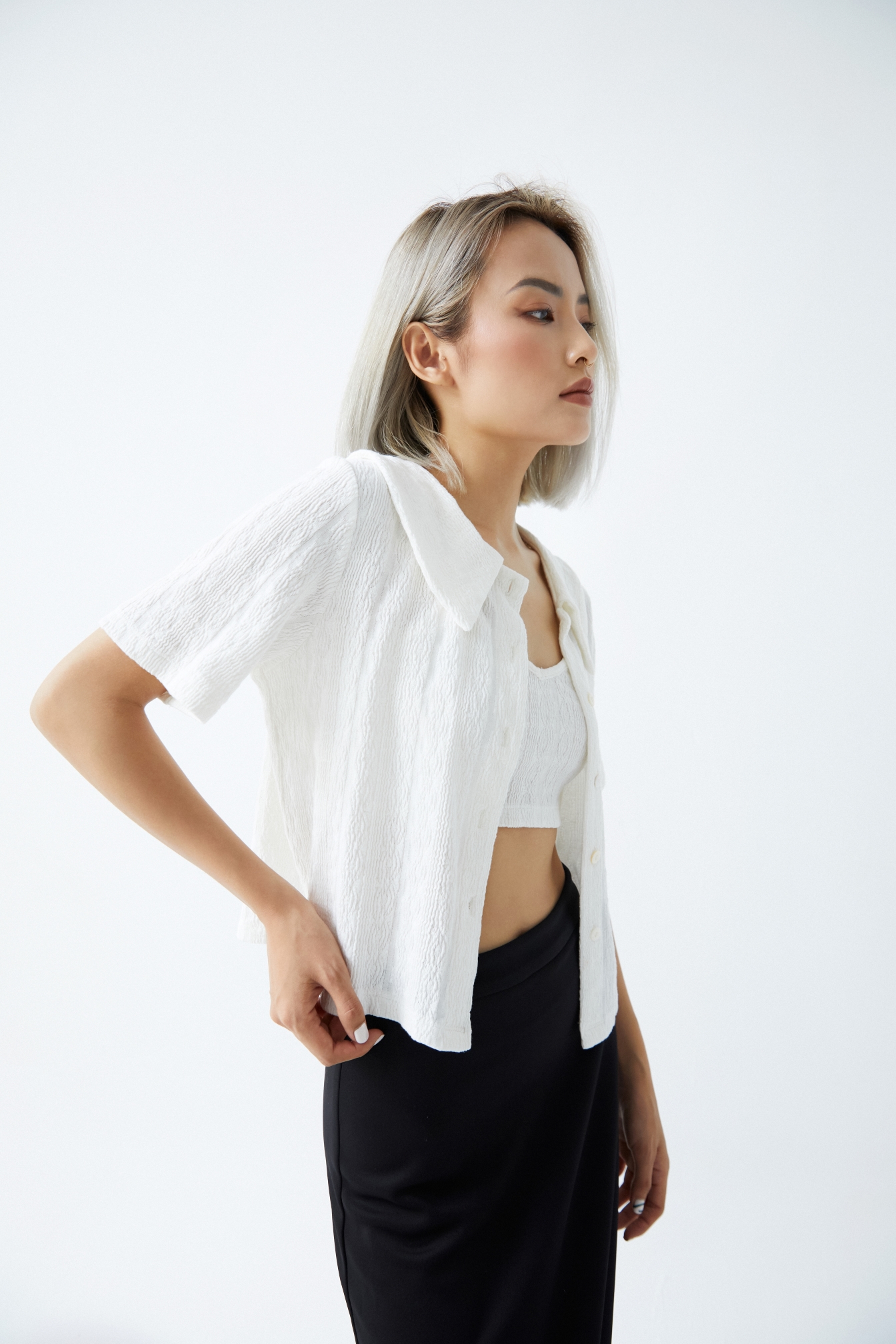 - Màu sắc : Trắng    - Chất liệu : Cotton pha   - Đặc tính : Nhẹ, thoáng mát, đứng phom   - Lưu ý giặt ủi :    Giặt riêng, giặt tay, giặt máy - Size : S / M   - Thông số sản phẩm :   Dài áo / Ngang ngực   S: 55 / 90   M: 57 / 94   LƯU Ý:    + Bảng size chart chỉ mang tính chất tham khảo, tùy thuộc vào số đo cơ thể Dottie sẵn sàng tư vấn cho bạn.   + Nếu cần Dottie hỗ trợ về sản phẩm, khi mở sản phẩm bạn vui lòng quay lại video quá trình mở sản phẩm giúp Dottie nhen.   + Giặt riêng với đồ tối màu    + Khuyến khích giặt tay đối với những sản phẩm trắng    + Hạn chế sấy ở nhiệt độ cao    QUY ĐỊNH ĐỔI TRẢ   • Thời gian: