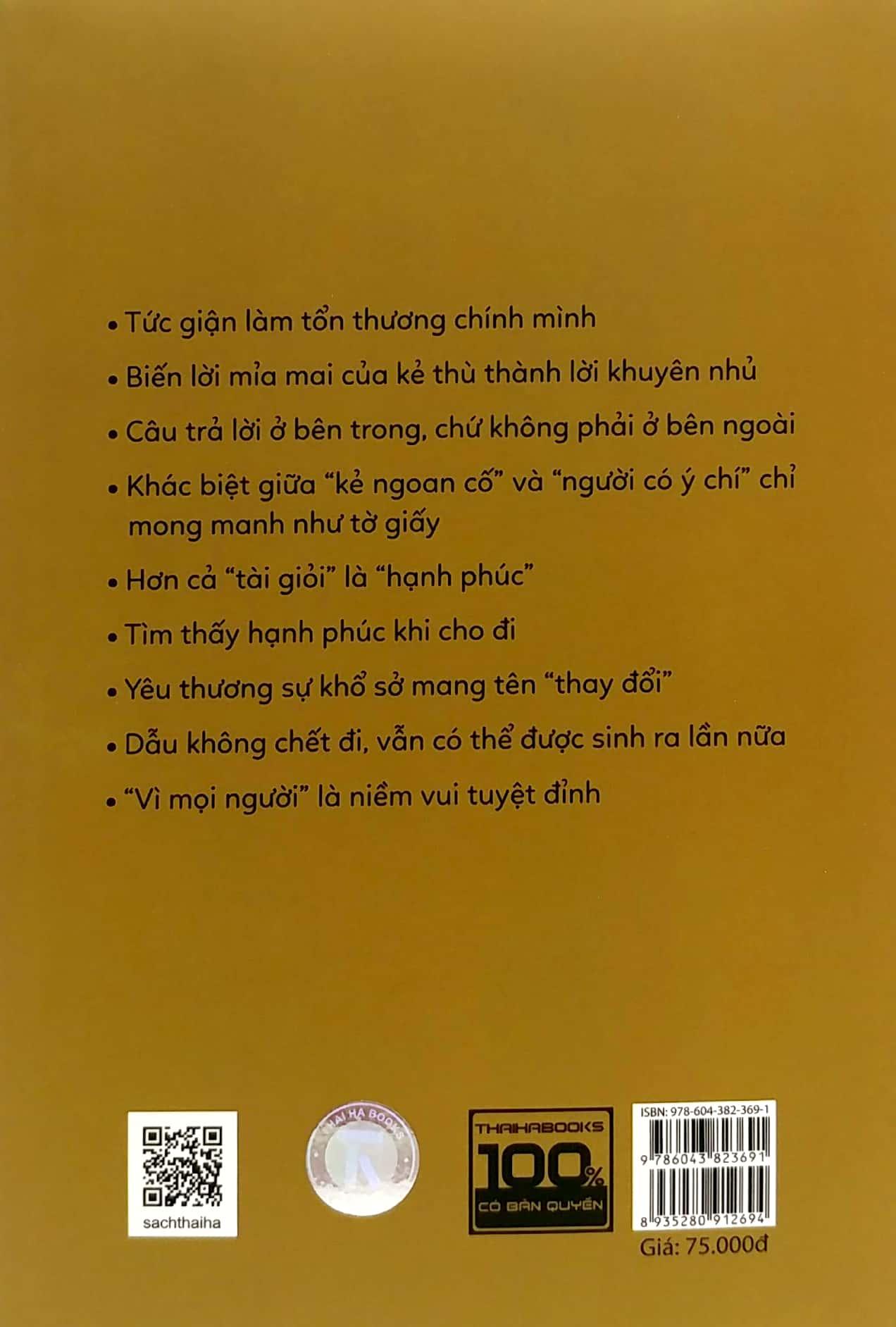 “Đức Phật” nơi công sở với các tranh minh họa được cắt ra từ Buddha. Từ các khung tranh và câu chuyện trích từ tác phẩm truyện tranh lừng danh “Đức Phật” của huyền thoại truyện tranh Nhật Bản, cũng là tác giả của cuốn sách này, Tezuka Osamu đã đưa ra những lời khuyên cho những vấn đề trong công việc và cuộc sống. Câu hỏi xuyên suốt cuốn sách là: Trên con đường giác ngộ, Đức Phật đã đối mặt và vượt qua những vấn đề quen thuộc trong cách làm việc và lối sống như thế nào, và chúng ta học được gì từ đó? Tác giả: Tezuka Osamu - huyền thoại truyện tranh Nhật Bản, tác giả của Black Jack, Cậu bé Atom, Phượng hoàng, nổi tiếng toàn cầu. Mục lục: Chương 1: Đối mặt với chính mình Bận tâm quá nhiều đến xung quanh, kết cục là đánh mất chính mình Tức giận làm tổn thương chính mình Nhìn lại mình trước khi chỉ trích người khác Coi đó là “lỗi của mình” thay vì cho rằng “tại người khác” Tương lai do bản thân hiện tại tạo ra Kỳ tích chỉ đến với người không từ bỏ Vượt qua bức tường giữa “suy nghĩ” và “hành động” Nghi ngờ hành động và suy nghĩ của bản thân Không tích lũy “tiểu ác” Từ đề cao chính mình Những thứ nên thấy thì càng khó thấy Chỉ tin vào mình thôi thì chẳng làm được gì Hạnh phúc hay khổ đau, tất thảy xuất phát từ bản thân Ranh giới giữa đỉnh cao và thất thế rất mong manh Năng lực của một cá thể sẽ nhờ người khá mà phát triển Cẩn thận với lời kiêu ngạo Chương 2: Thiện tâm với nhân gian Trả thù giống như tấn công chính bản thân Gạt đi hận thù cần nhiều can đảm “Hả hê” trong một khắc sẽ sinh ra thù hận trong tương lai Không tranh cãi với người mang năng lượng tiêu cực Hãy quan sát người ta căm hận bằng ánh nhìn sâu xa và tha thứ Can đảm xích lại gần người mình không ưa Đừng mãu chỉ trích sai lầm của người khác Nếu không đặt niềm tin, sẽ không được tin tưởng Luôn mang tâm thế “Đối phương = Bản thân” Không bị chi phối bởi thắng thua Khen ngợi ưu điểm cảu người khác “Khen ngợi” khác với “nịnh hót” Ta bịt tai thì người kia cũng bịt miệng “Nhiều chuyện” hay “khuyên nhủ”? Biến lời mỉa mai của kẻ thù thành lời khuyên nhủ Chương 3: Hòa mình vào tập thể Hết lòng với người khác cũng là vì chính mình Quan tâm đến người khác là quan tâm đến chính mình Đừng chỉ theo đuổi hạnh phúc của riêng mình Không phân biệt đối thủ hay đồng minh khi gặp “bất hạnh” Chỉ những người từng được ta giúp đỡ mới giúp đỡ ta Ta không thể làm được gì nếu không có tình người ấm áp Không phải “Người xuất chúng = Người được yêu mến” Môi trường mới luôn tồn tại sự bất công Câu trả lời ở bên trong, chứ không phải ở bên ngoài Nếu chán ghét làm việc thì công việc ấy chẳng có ý nghĩ gì Đừng vì bình minh mà thức trắng đêm Bây giờ có nên làm việc đó không? Khác biệt giữa “kẻ ngoan cố” và “người có ý chí” chỉ mong manh như tờ giấy Bị trói buộc hay được bảo vệ bởi luật lệ? Không biến tổ chức thành nơi coi người chăm chỉ là đồ ngốc Đừng để mình bị chi phối bởi lời đồn đại và phê phán Dạy người khác, cũng là dạy chính mình Hơn cả “tài giỏi” là “hạnh phúc” Buông tay, ôm trọn Tìm thấy hạnh phúc khi cho đi Người coi kẻ khác là đồ ngốc sẽ chỉ nhìn thấy sự ngu ngốc Tách biệt rõ ràng phẩm chất và chức tước Chương 4: Khổ đau nơi tâm hồn Yêu thương sự khổ sở mang tên “thay đổi” Chẳng có gì là “sinh ra đã khổ” “Sao lại là tôi?” Lấy “đua khổ” làm động lực để vươn lên Càng đau khổ lại càng bình tĩnh Không lãng phí sức lực bi quan về tương lai Nếu tâm hồn thay đổi, tương lai cũng thay đổi Không đi ngược lại quy luật của thế gian Dù thế nào cũng đừng buông xuôi và hãy sống tốt Giao phó bản thân cho dòng chảy mang tên “bản thân” Dẫu không chết đi, vẫn có thể được sinh ra lần nữa Dẫu vô lý hay bất công, hãy chân thành tiếp nhận Dẫu chằng chịt vết thương cũng không dừng lại Không nhầm lẫn giữa “khiêm nhường” và “tự hạ thấp” Giây phút khổ sở là khoảnh khắc trưởng thành Lời đáp của quá khứ là hiện tại, lời đáp của hiện tại là tương lai Chương 5: Đắm chìm trong tham vọng “Khổ sở” sinh ra từ “tham vọng” Chuỗi tham vọng dai dẳng Tham vọng bao nhiêu, khổ sở bấy nhiêu Đừng than thở rằng “không có” Sống với “mức độ phù hợp” Không làm ngơ thành tích của chiến hữu “Vì mọi người” là niềm vui tuyệt đỉnh Trích đoạn nội dung: Nếu chán ghét làm việc thì công việc ấy chẳng có ý nghĩa gì Trải qua cả quãng đường dài hành hương, đột nhiên Đức Phật lịm đi. Các môn đệ hết thảy lo lắng cho Người. Tuy nhiên, một môn đệ nọ khi biết sinh mệnh của Đức Phật không còn bao lâu đã phấn khởi nói: “Chúng ta sắp được giải phóng rồi!” Trong học tập lẫn công việc, kết quả 