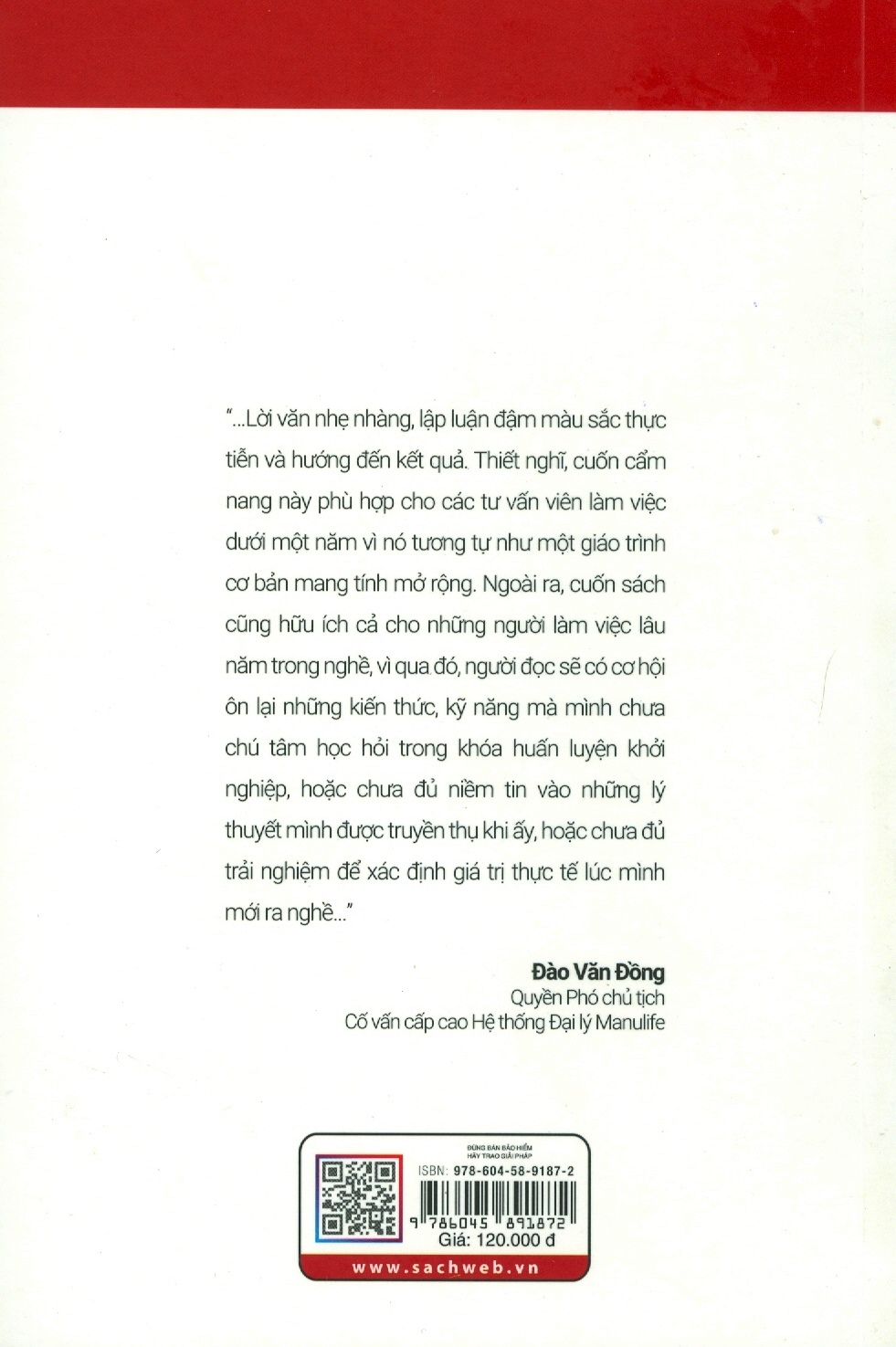 Cuốn sách nói về công việc của người tư vấn viên tài chính, bắt đầu từ cách nhìn nhận vai trò đến thái độ, những kỹ năng cần thiết của một người đại lý bảo hiểm chuyên nghiệp, dựa vào mô thức thành công đã qua kiểm chứng: Kiến thức + Thái độ + Kỹ năng + Thói quen (KASH)(1). Đây không phải là một cuốn sách hàn lâm nói về nghề nghiệp. Nó đơn giản là sự kết hợp hài hòa của những kinh nghiệm mang tính học thuật từ sách vở quốc tế và những trải nghiệm thực tế của ngành bảo hiểm nhân thọ trên dưới 20 năm qua tại thị trường Việt Nam.