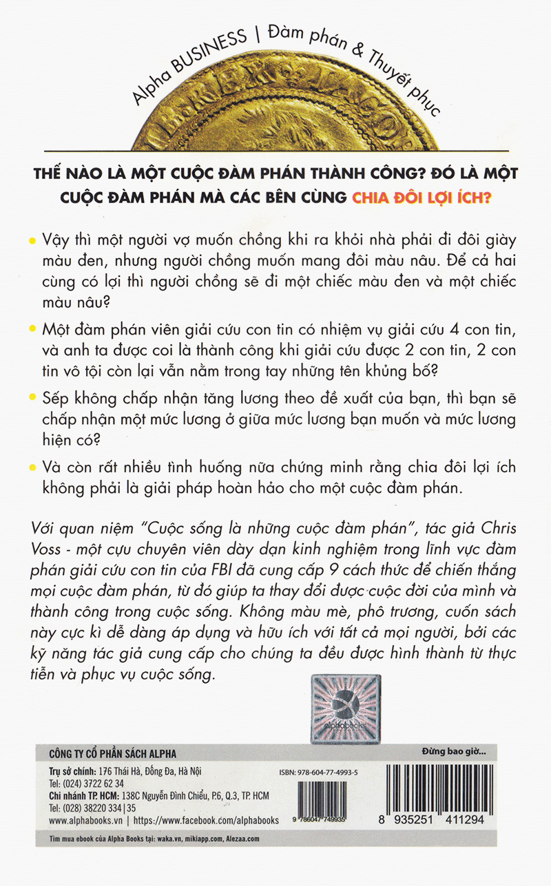Với quan niệm “Cuộc sống là những cuộc đàm phán”, tác giả Chris Voss đã cung cấp 9 cách thức để chiến thắng mọi cuộc đàm phán, từ đó giúp ta thay đổi được cuộc đời của mình và thành công trong cuộc sống – như chính tác giả và các học viên của ông đã trải qua.