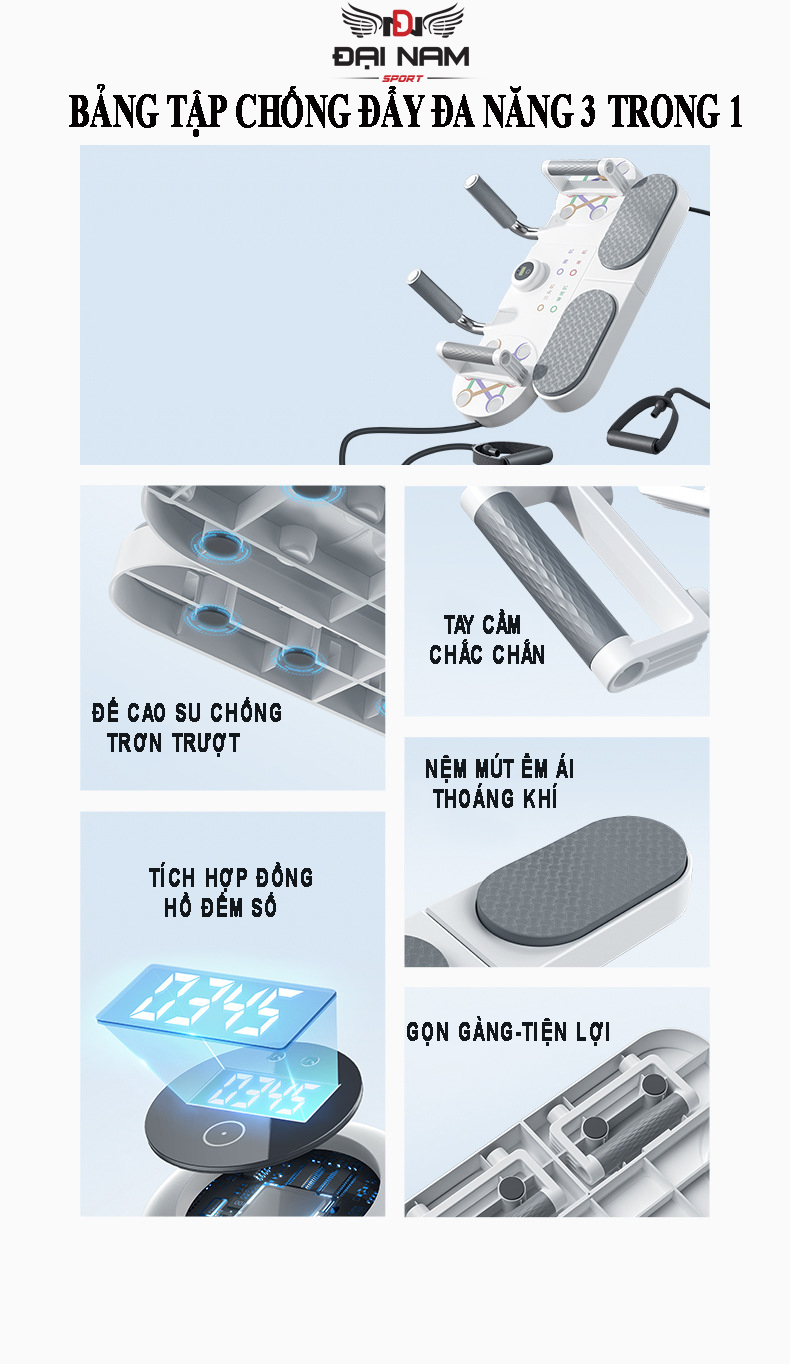1.CÁC THÔNG SỐ KỸ THUẬT CỦA BỘ DỤNG CỤ CHỐNG ĐẨY ĐA NĂNG 3 TRONG 1. - Thương hiệu: Đại Nam Sport. - Xuất xứ: Trung Quốc. - Kích thước: D x R x C=